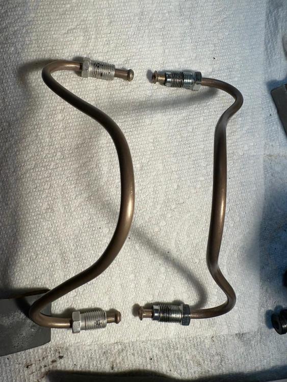 I found a pair of 4435.09 cylinder-to-cylinder lines at ALVEAS and they should be on their way shortly. Much easier than trying to find correct fittings here. My originals are SO mangled and I'm missing 2.
