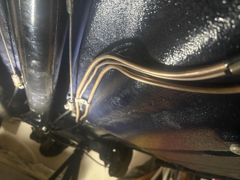 Sunday I made a couple of lines and then mounted them all to the car. New rear proportioning valve with two of the three lines connected to it... Third line connected to the prop valve. Longest line to the front mounted and the end will be flared under the car once I establish the perfect length.