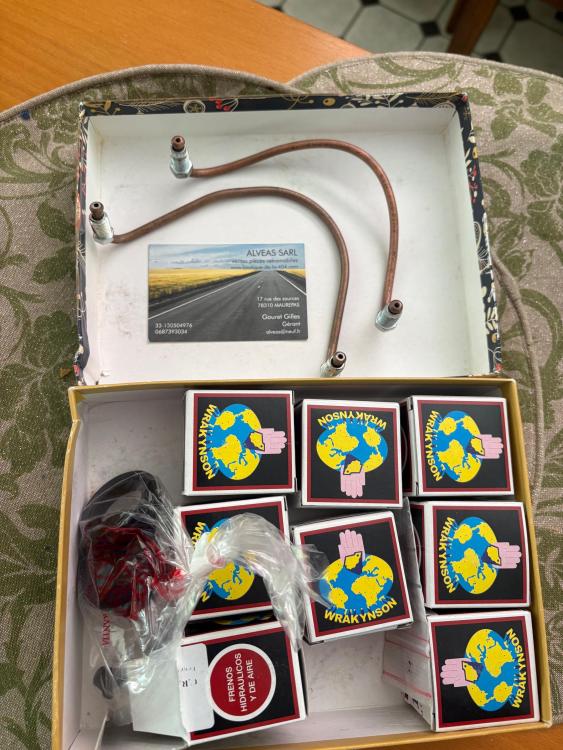 Front crossover lines and some other spare brake parts arrived from France today. ALVEAS is a good fast supplier.